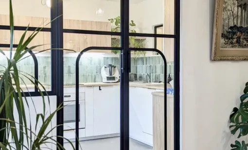 Création sur-mesure de 2 portes double battantes + verrière dans un appartement situé à Lyon.